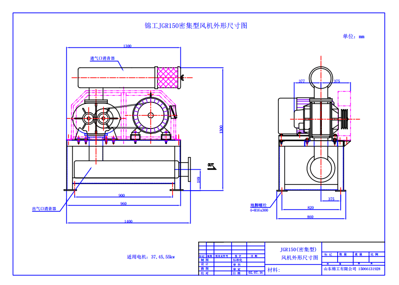 4、三叶罗茨风机安装时,应察看地基是否牢固,表面是否平整,地基是否高出地面等。