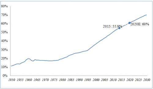 从世界发展情况看,城市化率的发展在超过了30%以后就进入了高速发展期,全世界都这样。