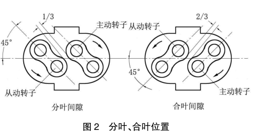 合叶为主动转子的啮合面向被动转子有靠近的趋势;分叶为主动转子的啮合面向被动转子有远离的趋势。若转子分、合叶间隙不合适,可调整齿套与轮毂或齿轮与轴的周向相对角度。